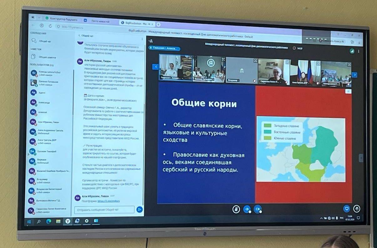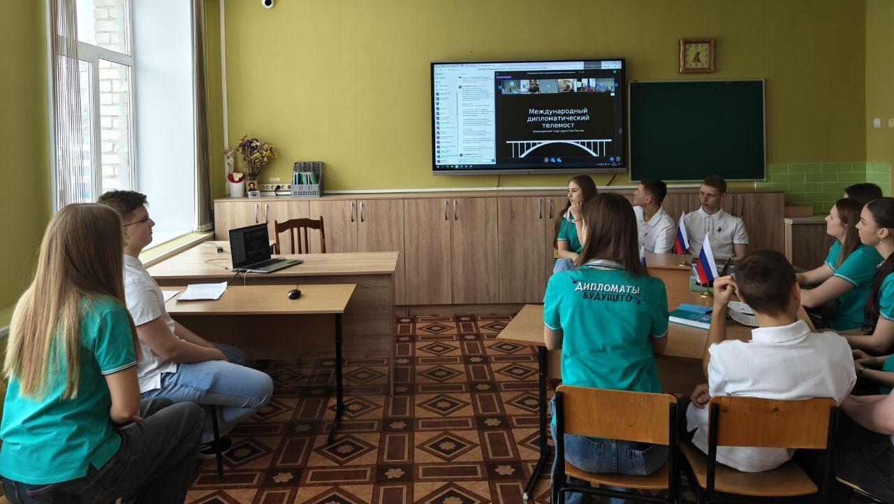 🌍 Активисты клуба «Юный дипломат» МБОУ-СОШ №9 им. А.Г. Карлова г. Клинцы Брянской области, в преддверии Дня дипломатического работника приняли участие в Международном дипломатическом телемосте, посвящённом Году единства народов России 🇷🇺🤝
