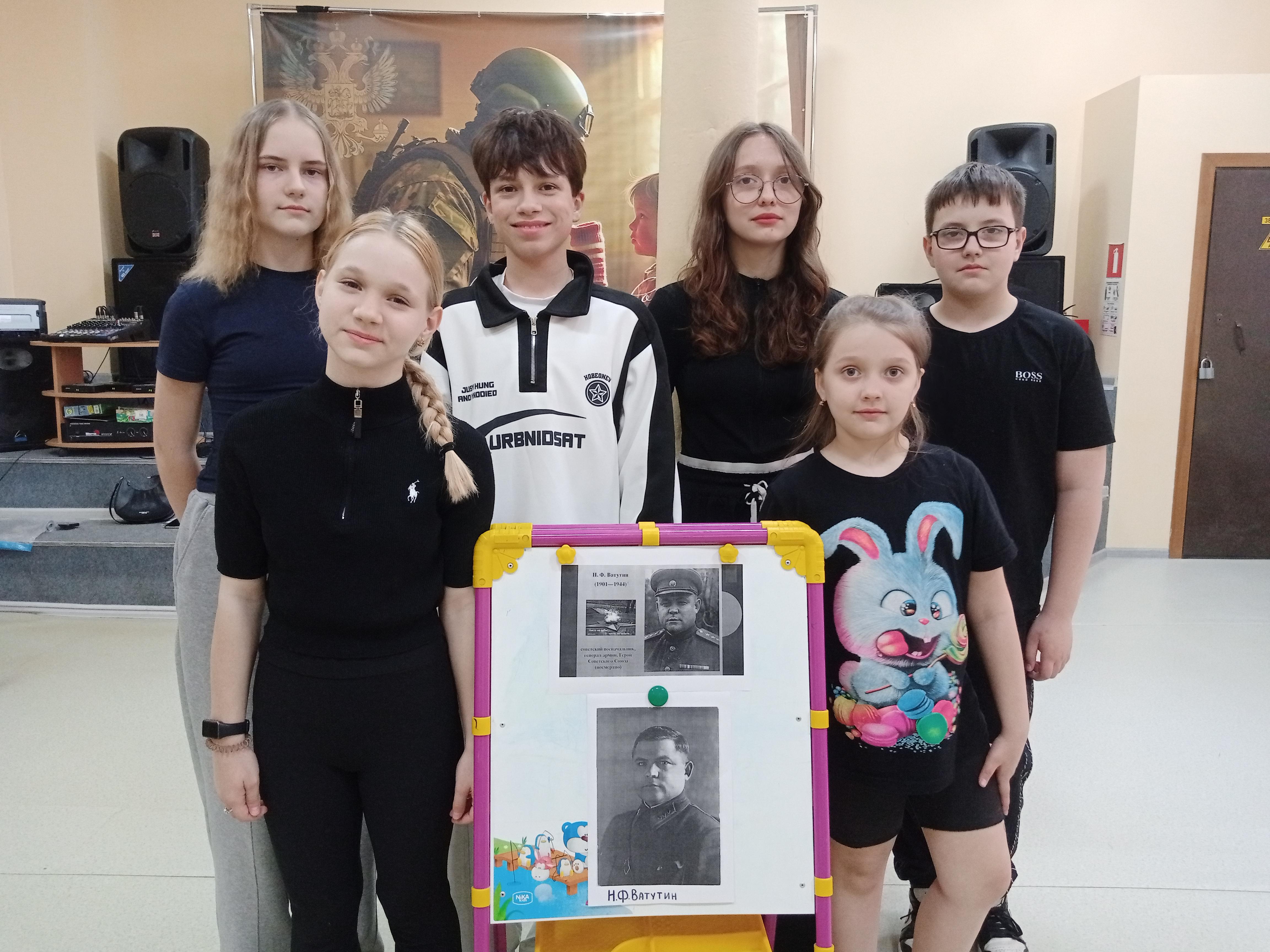 24 апреля в преддверии 80-той годовщины со дня смерти Н.Ф.Ватутина в нашем Центре детского творчества состоялся урок воинской славы “Памяти генерала Н.Ф.Ватутина”. Ребята узнали, что имя Николая Фёдоровича навсегда связано с победами под Сталинградом, Курском, при форсировании Днепра. Н. Ф. Ватутин не дожил до победного мая 1945 года, но внёс значительный вклад в освобождение города Воронежа. В 1965 году военачальнику было посмертно присвоено звание Героя Советского Союза. Важно сохранять и приумножать память о наших предках и истории нашей Родины!